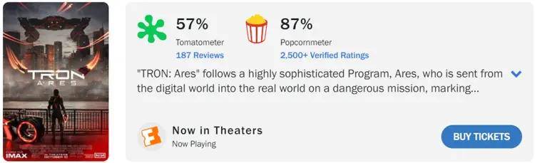 烂番茄新鲜度仅 57%,刚过及格线,诸多专业影评认为其剧情老套、角色塑造单薄,无法撑起科幻大片的厚重内涵。