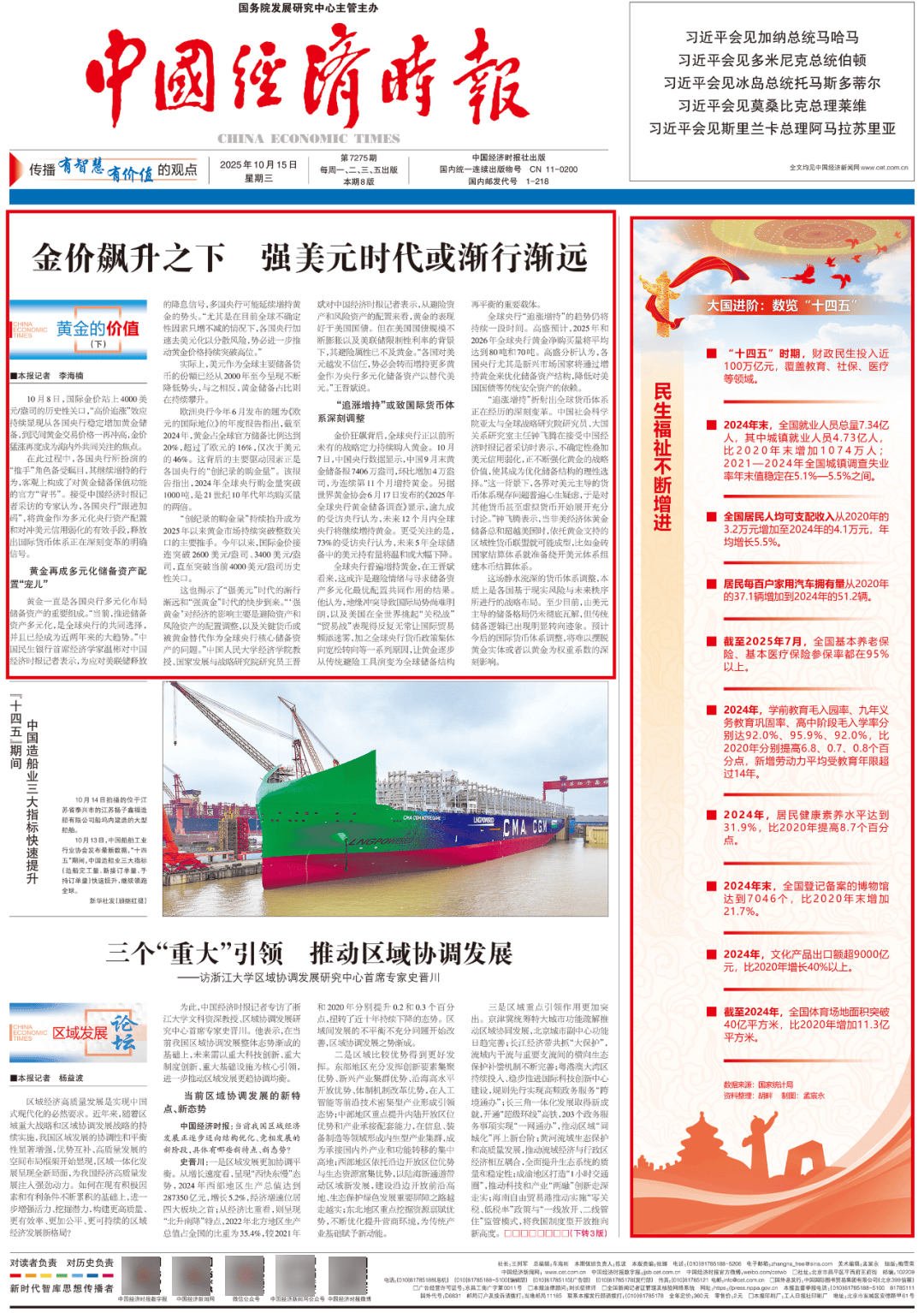 这也揭示了“强美元”时代的渐行渐远和“强黄金”时代的快步到来。“‘强黄金’对经济的影响主要是避险资产和风险资产的配置调整,以及关键货币或被黄金替代作为全球央行核心储备资产的问题。”中国人民大学经济学院教授、国家发展与战略研究院研究员王晋斌对中国经济时报记者表示,从避险资产和风险资产的配置来看,黄金的表现好于美国国债。但在美国国债规模不断膨胀以及美联储限制性利率的背景下,其避险属性已不及黄金。“各国对美元越发不信任,势必会转而增持更多黄金作为央行多元化储备资产以替代美元。”王晋斌说。