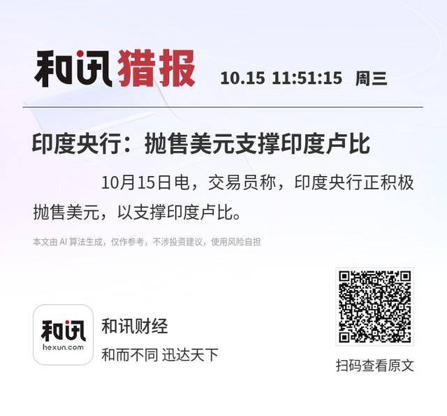 10月15日电,交易员称,印度央行正积极抛售美元,以支撑印度卢比。