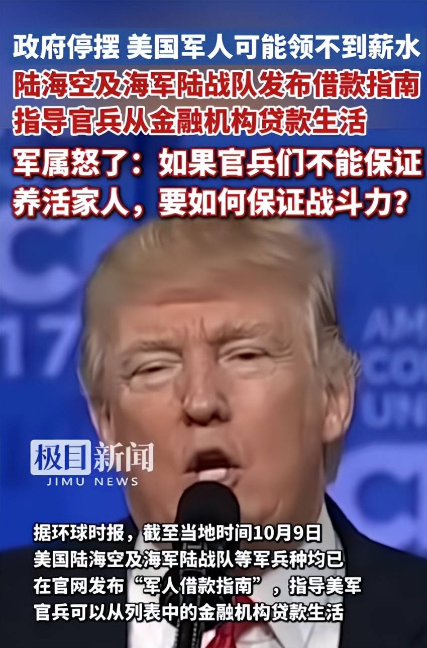 目前约有130万现役军人正无薪工作。以往,国会通常会迅速通过“军人薪酬保障法”,确保军人按时领薪,但此次众议院已休会,距离发薪日仅剩两天。共和党众议员、前海军直升机飞行员詹·基根斯提出维持军薪的议案,但尚未进入审议。总统特朗普在记者会上表示“可能会实现”,但未给出具体时间表。