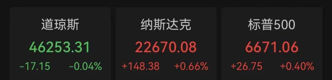 当地时间10月15日,美股三大指数涨跌不一,截至收盘,道琼斯工业指数下跌0.04%,纳斯达克指数、标普500指数分别上涨0.66%、0.4%。
