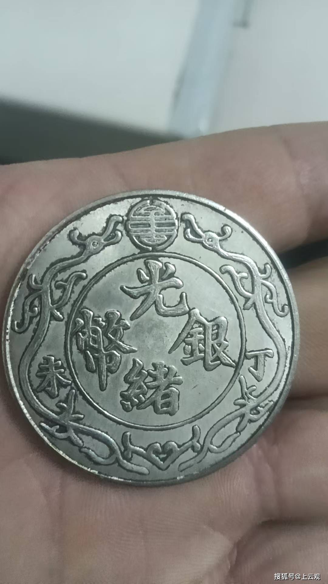 银币正面的蟠龙图案,龙鳞层叠分明,龙须飘逸灵动,龙眼炯炯有神,尽显“龙的精神”——既符合皇家威仪的象征,又通过机制工艺实现了传统龙纹艺术的现代化转译。背面“光绪银币丁未”的隶书字体端庄大气,双龙戏珠的边饰更添吉祥寓意,金属质感与浮雕工艺的结合,让银币兼具实用性与艺术观赏性,是晚清造币工艺的巅峰之作。