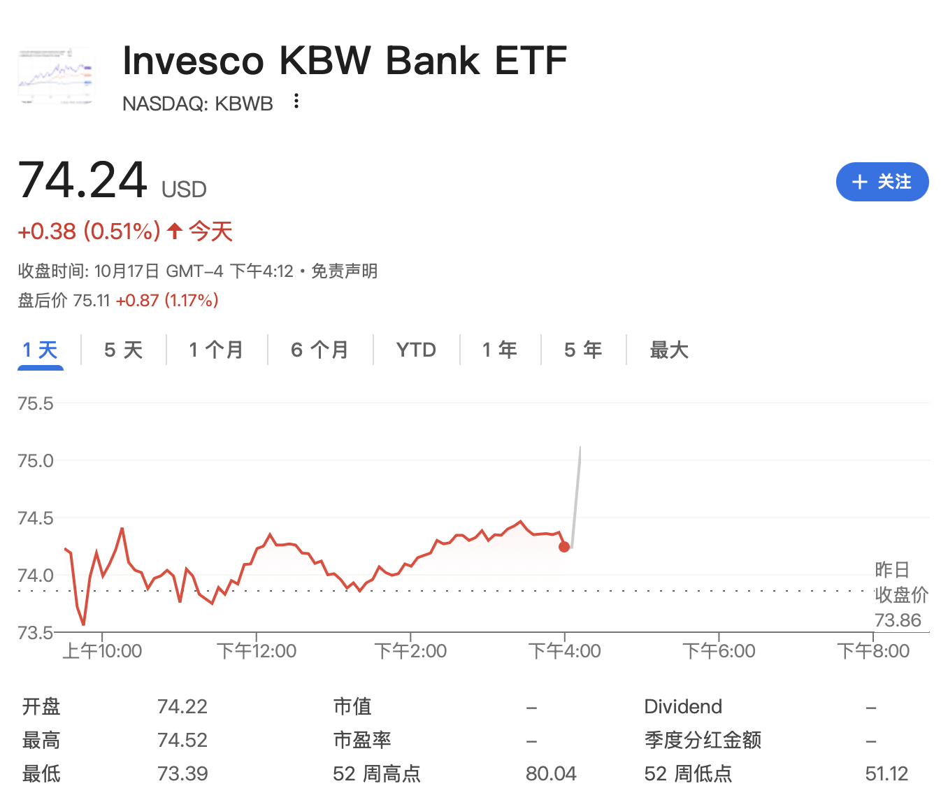本周五,多家银行公布第三季度业绩、贷款损失拨备低于分析师预期,高管也试图安抚受到惊吓的投资者,地区银行股价有所回升。