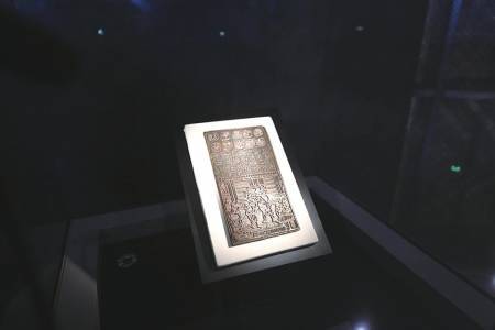 成都交子金融博物馆展出的“千斯仓”钞版复制品,从该钞版可以略窥交子面貌。新华社发