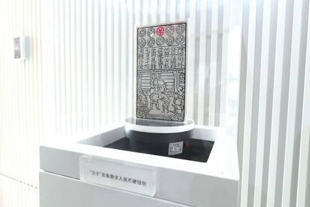 成都交子金融博物馆内展出的“交子”形象数字人民币硬钱包。新华社发