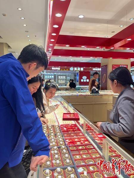 10月18日,北京朝阳,某黄金店铺里顾客在选购黄金首饰。中青报·中青网见习记者 杨蕾/摄