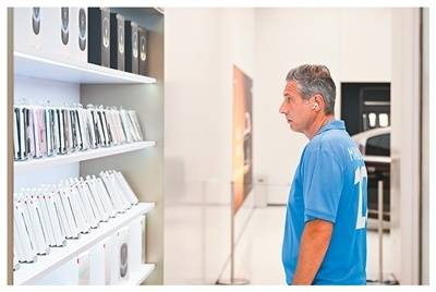 作为许多来华外国游客入境游“第一站”,上海见证了强劲的入境游消费活力。今年上半年,上海海关共验核离境退税申请单6.4万票,比去年同期大幅增长1.4倍,数量与去年全年总单数基本持平。图为近日,外国游客在位于上海市南京路步行街的华为商店里浏览电子产品。 新华社记者 陈浩明摄