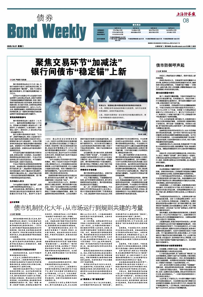 其二,提升风险管理与信息共享机制。集中债券借贷业务的推进需要建立完善的风险防控与信息披露体系。业内专家建议,可在中央托管机构和交易机构间建立实时信息共享机制,强化借贷交易的穿透式监测,完善抵押品动态评估和风险预警系统,防范集中度和期限错配风险。同时,推动统一的信用评估与违约处置标准,增强市场透明度与稳健性,为业务的可持续运行提供制度保障。