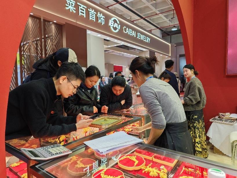 这一趋势在其他珠宝饰品展区也有体现。记者看到此次展览覆盖翡翠玉石、珍珠、水晶矿物等全产业链品类,既顺应新中式美学与年轻消费趋势,又整合全球核心产区资源。中国珠宝玉石首饰行业协会相关负责人说:“如今在新中式浪潮下,翡翠、和田玉、南红、绿松石、玛瑙、猛犸象牙、析木玉等兼具东方美学的各类玉石品种热度持续攀升,它们不仅契合新中式审美,也吸引了越来越多追求文化表达与个性搭配的年轻消费者。”他进一步表示:“尽管近几年行业发展环境严峻,市场波动加大、增长压力加剧,但依托中国超大规模市场的厚度与广度,行业满足人民群众对美好生活向往的底色不变,转型升级的底气充足,高质量发展的动力充沛,长远来看,我国黄金珠宝产业基础稳、优势多、韧性强、潜能大,长期向好的支撑条件和基本趋势未发生改变。”