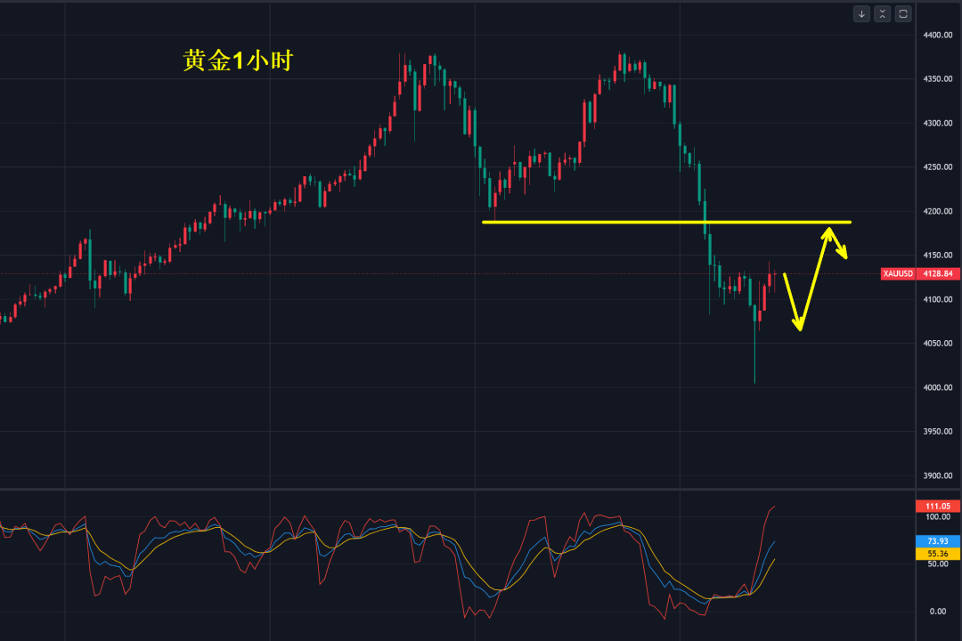 1小时黄金形成双顶,4385美元成为短期顶部,下调行情的判断不是看高点,而是最后一次拉升前支撑位置的破位,4180美元失守意味着短期方向已经进入震荡,并非强势单边。