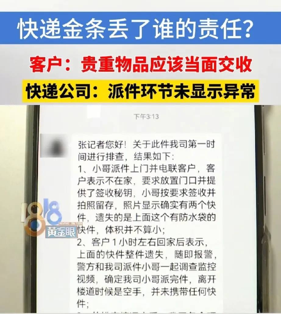 最后想问大家:你觉得肖女士的金条丢了,快递公司该赔吗?如果是你,遇到贵重快递会怎么处理?欢迎在评论区聊聊,给更多人避避坑!