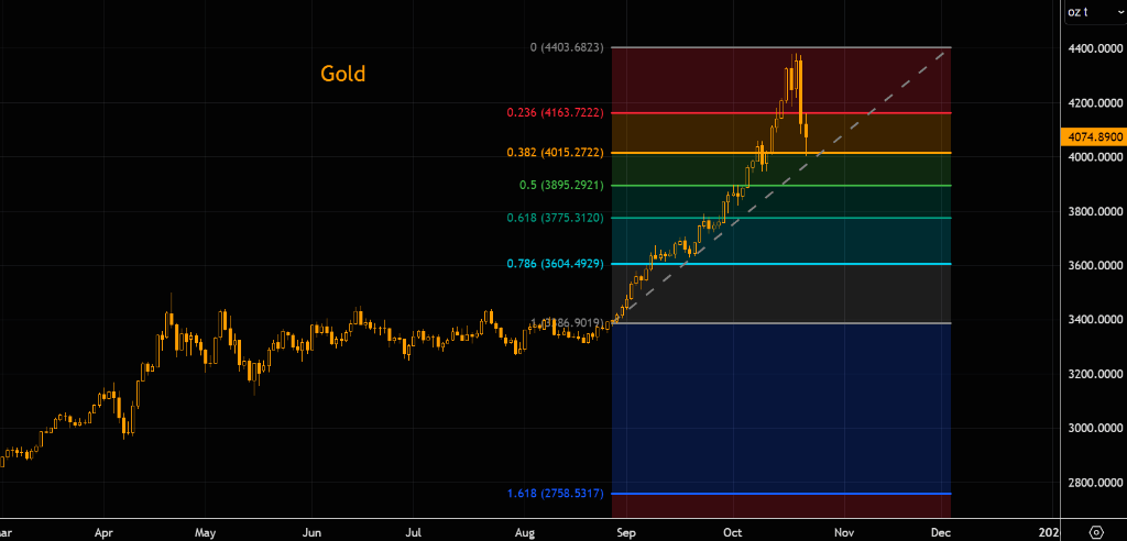 从技术层面看,4000美元是黄金当前最重要的支撑。无论是从移动平均线还是斐波那契回撤角度看,该水平都极为“巨大”。若失守,下一个值得关注的支撑区域将在3800美元附近,其下方不远处即为50日移动平均线。上行方面,初步阻力位则位于4200美元。