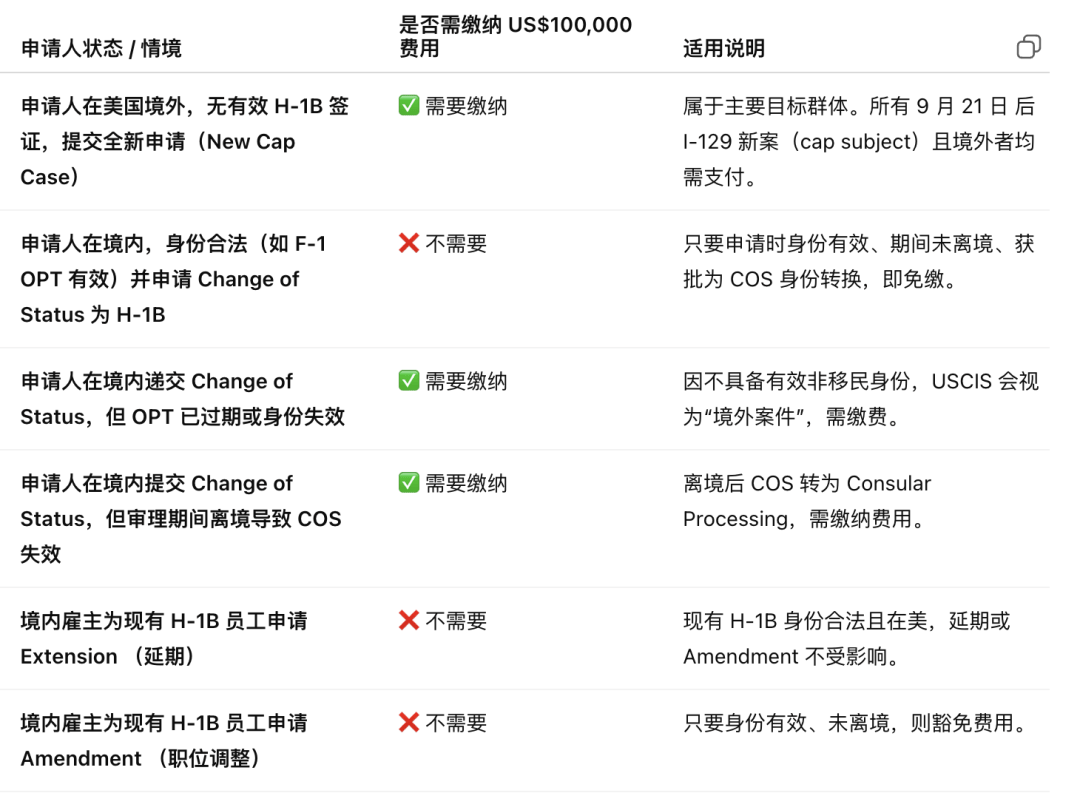 ✅ 新规明确了10万美元H-1B签证费用适用于以下情况: