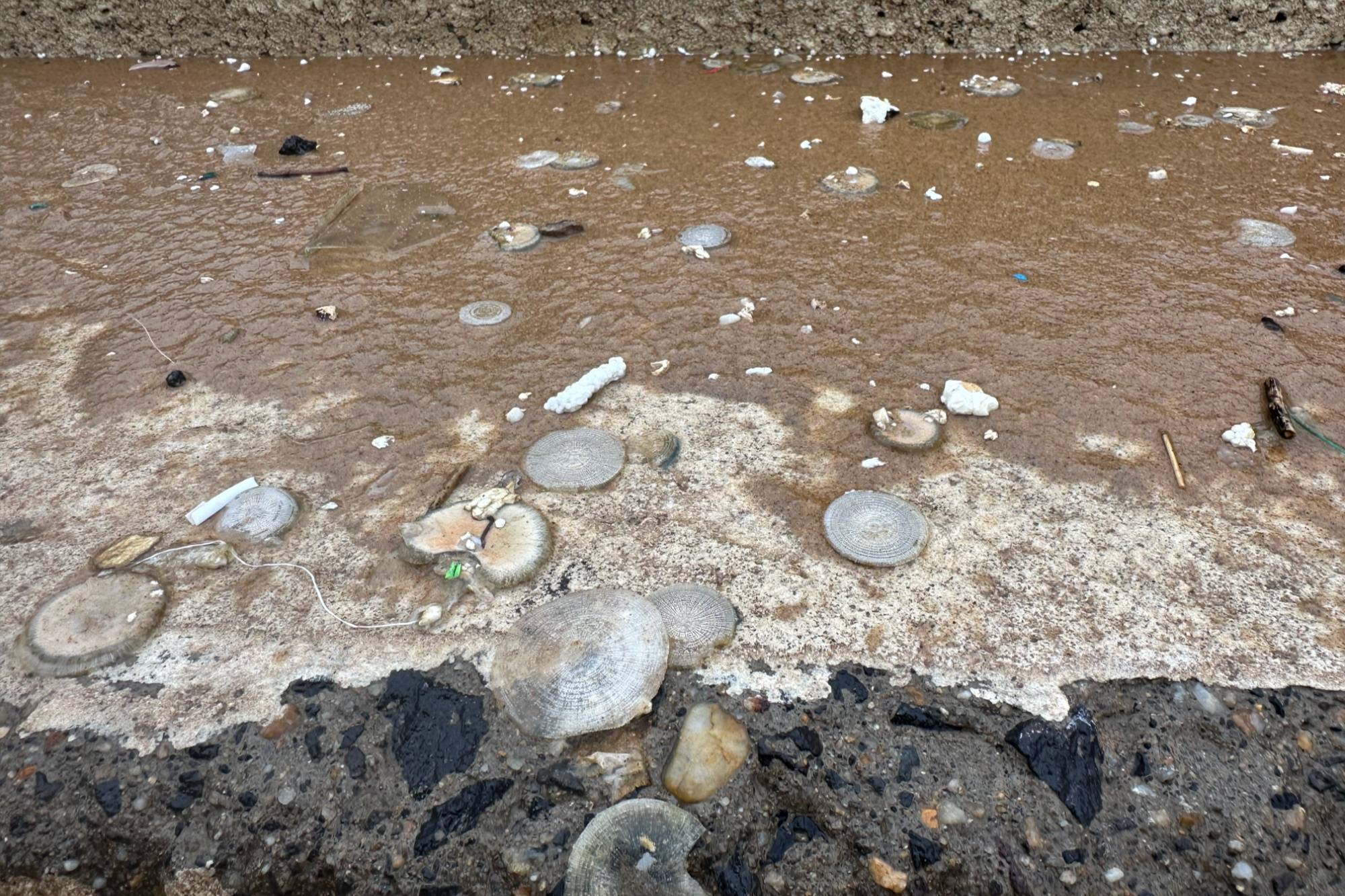 10月23日上午,记者来到海口市西秀海滩、假日海滩、五源河国家湿地公园入海口处等点位,发现受潮位影响,岸滩海面上已无银币水母踪迹,但沙滩上仍有不少被海浪冲上岸搁浅死亡的银币水母。