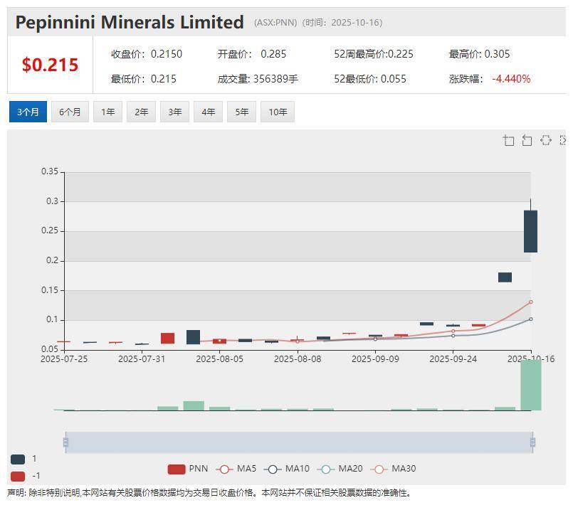 Power Minerals股价自6月底触底回升,并在10月初宣布收购美国加州Gamma重稀土项目后节节攀升,累计涨幅接近240%。