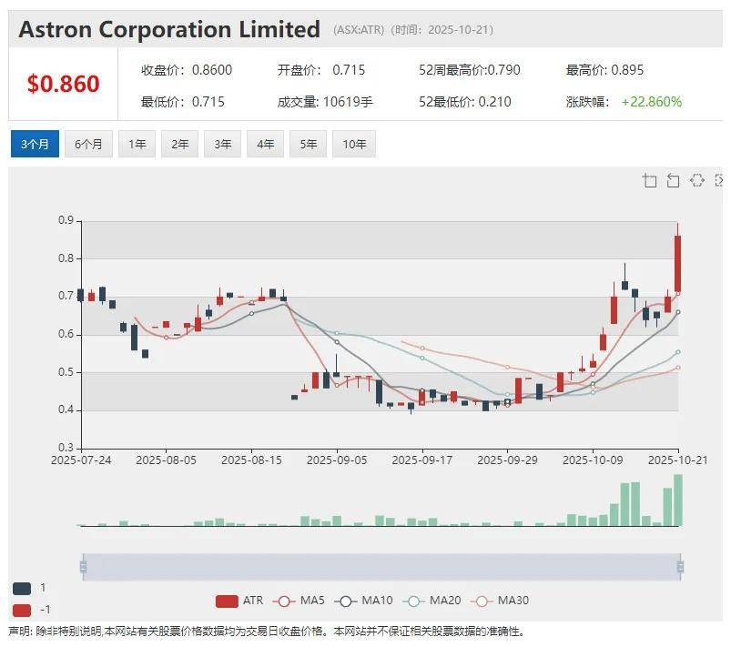 澳华财经在线数据库显示,ATR最新价0.86澳元,已发行股本4.19亿股,市值3.6亿澳元。