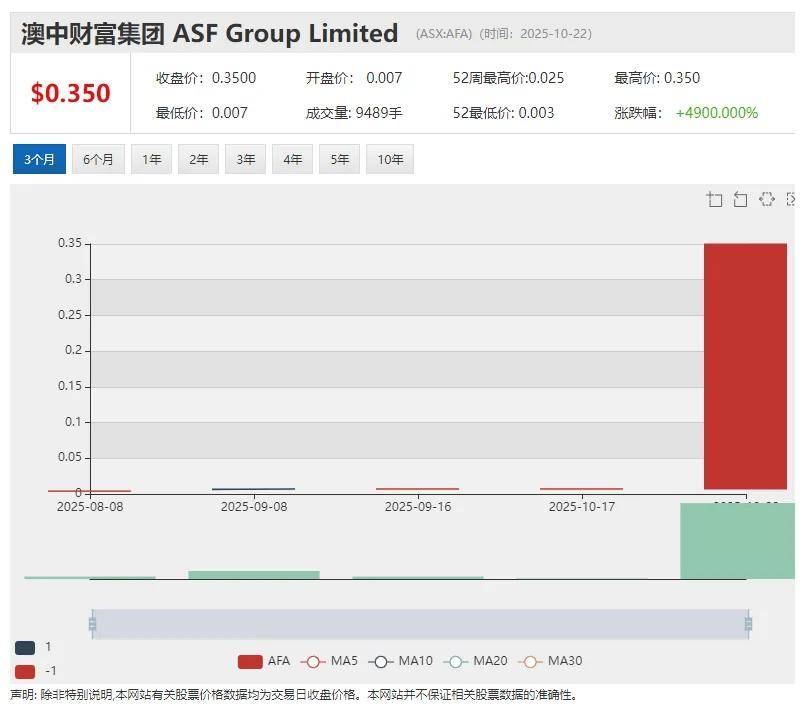 Asf Group Ltd (ASX股票代码:AFA)周三早盘股价暴涨4900%后紧急停牌,以待回复澳交所股价异动问询。
