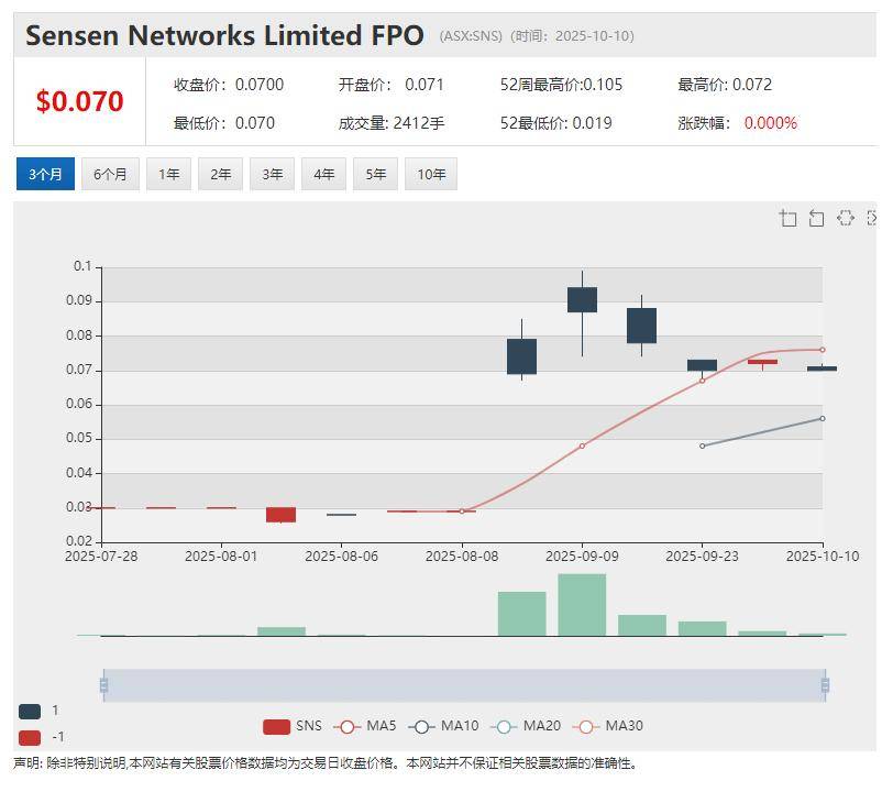 实时感知Al解决方案提供商Sensen Networks Ltd (ASX股票代码:SNS)股价异动,周三飙涨30.21%。