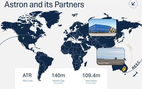 【异动股】Astron (ASX:ATR)Donald稀土矿砂项目收到出口信贷机构8000万澳元有条件支持函