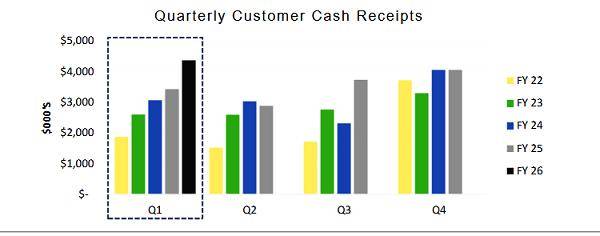 季报显示,Sensen Networks 2026财年第一季度(截至2025年9月30日季度)现金收入达到创纪录的430万澳元,同比增长27%,并实现正运营现金流31.1万澳元。