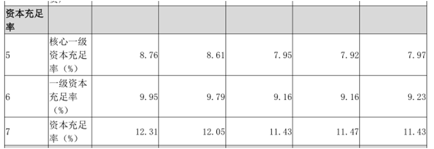 根据该行2025年第二季度第三支柱信息披露,截至2025年6月30日,该行核心一级资本充足率、一级资本充足率、资本充足率分别为8.76%、9.95%和12.31%。