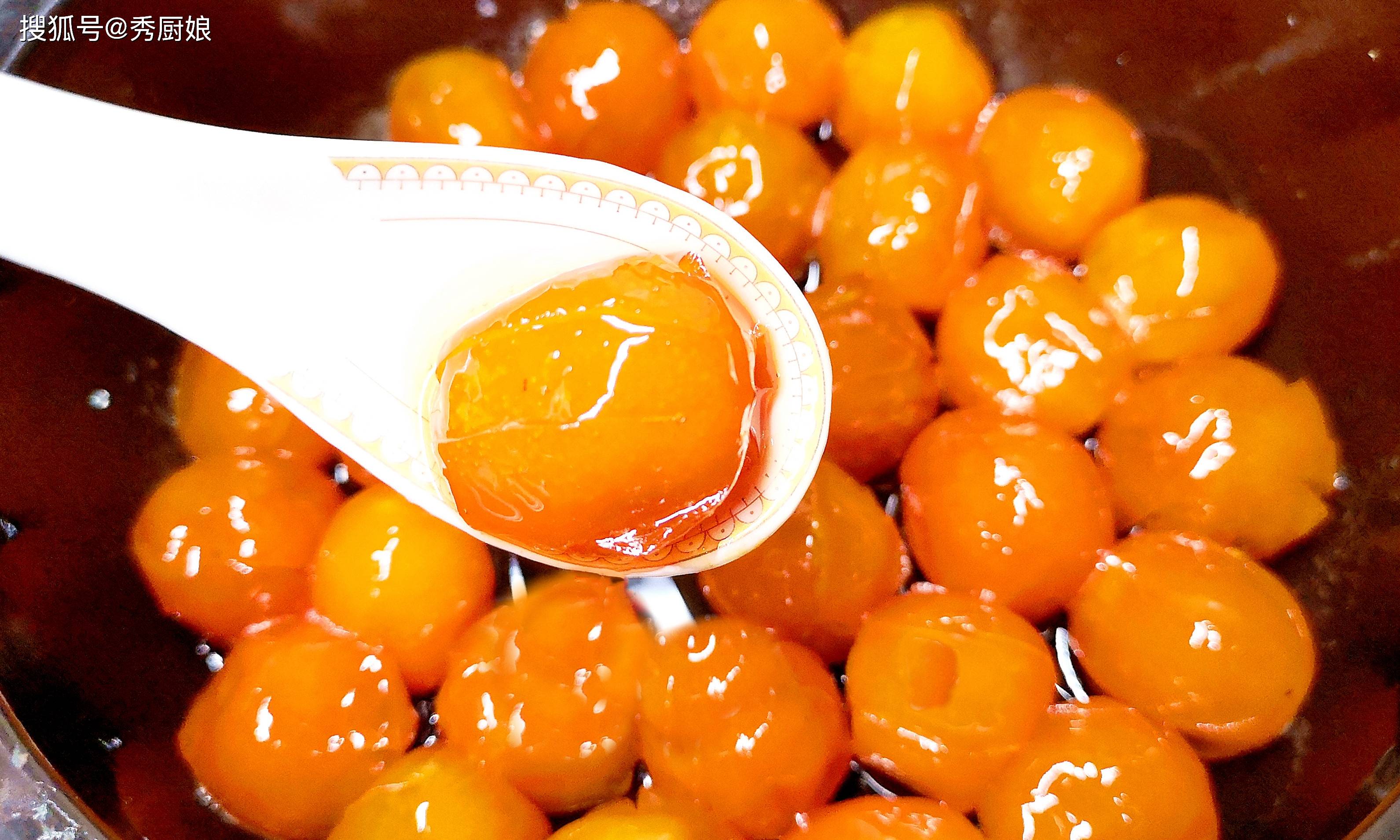 做好的糖渍金桔,像一颗颗小宝石,可以直接当零食吃,也可以泡水喝,甜滋滋的,还有化痰止咳的妙用。