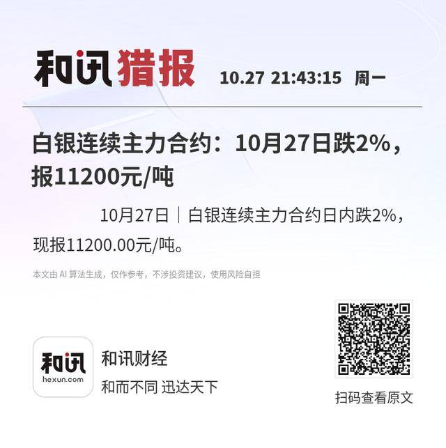 10月27日|白银连续主力合约日内跌2%,现报11200.00元/吨。