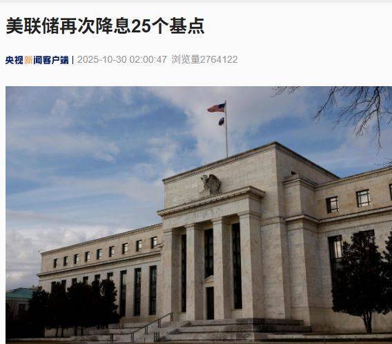 据央视新闻,当地时间10月29日,美联储宣布将联邦基金利率目标区间下调25个基点到3.75%至4.00%之间。这是美联储继9月17日降息25个基点后再次降息,也是自2024年9月以来第五次降息。
