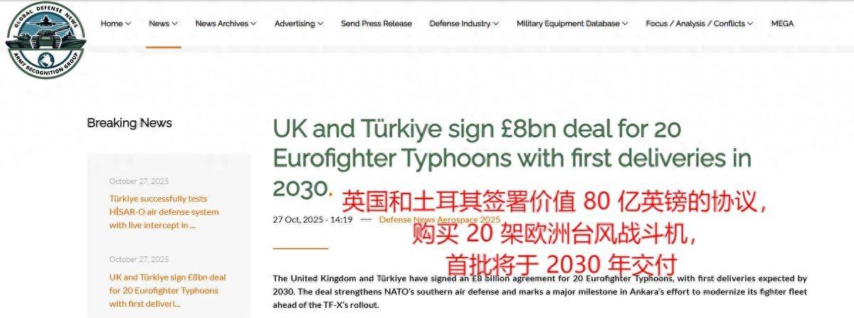 最近,土耳其购买欧洲“台风”战机的价格再次让人震惊。10月27日,土耳其总统埃尔多安与英国首相斯塔默达成了一项总价值80亿英镑的台风战机采购协议。根据协议,土耳其将从英国购买20架最新型TR4型“台风”战斗机,单架台风的价格达到了创纪录的4亿英镑,这个价格实在太高了。即便是五代机,甚至是六代机,价格也不会这么贵。这个价格根本不是买战机,而是被迫接受高价的交易,土耳其虽然咬牙答应了这笔交易,但根本原因在于他们当初的选择埋下了祸根。