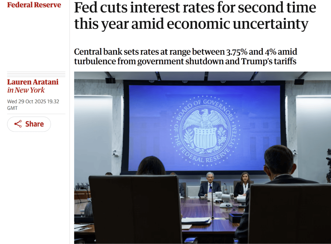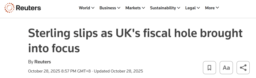 另值得注意的是,美联储已经提前英国一步宣布降息。10月29日,美联储宣布将联邦基金利率目标区间下调25个基点,这是美联储继9月17日降息25个基点后再次降息。英媒指出,美联储降息导致美元走弱从而限制了英镑近期后续的进一步下跌空间。