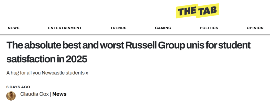 ● 英国罗素集团大学满意度排名公开,牛剑领跑,纽卡斯尔大学垫底