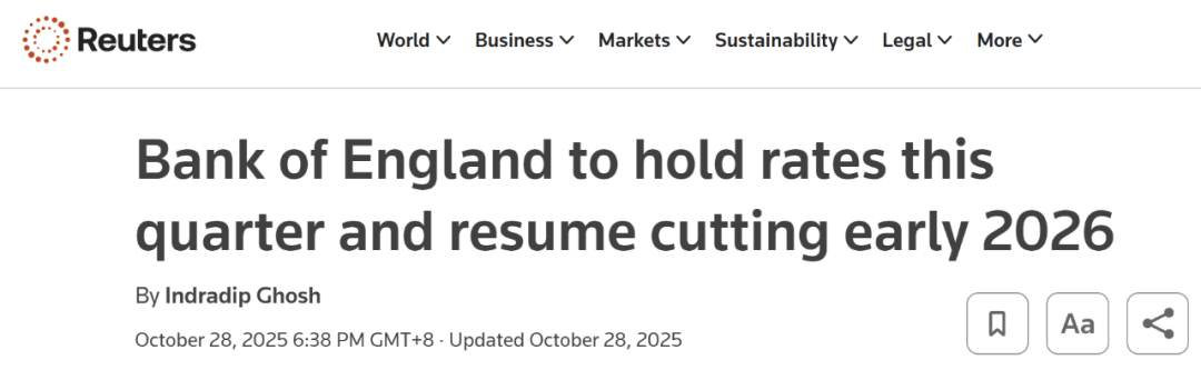 不过,也有预测指出英国央行会选择在2026年初降息,而非今年四季度。