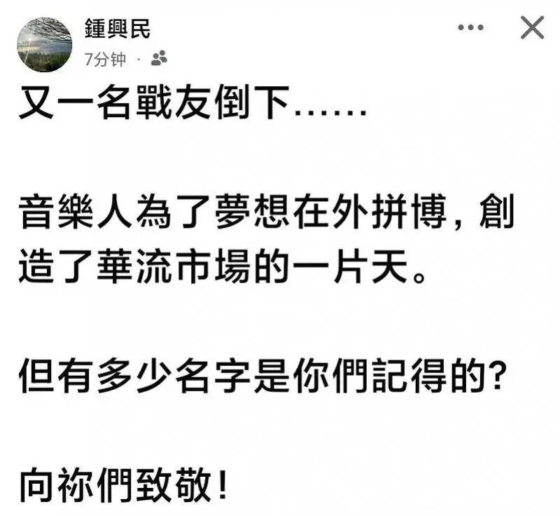 华语乐坛痛失巨匠。今天(11月1日),著名编曲家、音乐人、键盘手,齐豫“风采依旧·在”演唱会音乐总监屠颖在广州去世,享年62岁。