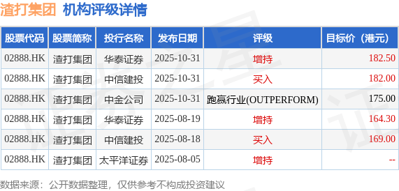截至2025年11月3日收盘,渣打集团(02888.HK)报收于160.6港元,上涨1.77%,成交量74.5万股,成交额1.19亿港元。投行对该股的评级以增持为主,近90天内共有3家投行给出增持评级,近90天的目标均价为174.56港元。华泰证券最新一份研报给予渣打集团增持评级,目标价182.5港元。