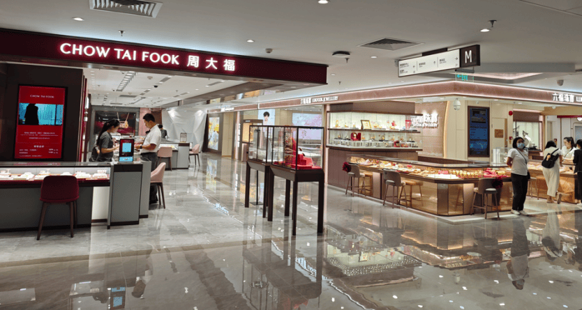 在相隔不远的六福珠宝门店,金饰的价格为1279元/克。
