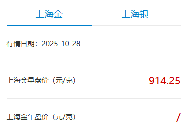 据《消费者报道》记者了解,这些线下门店的金价每天调整,依据的是大盘金价,即上海黄金交易所的交易价格,又简称上海金。如10月28日,上海金的早盘价为914.25元。
