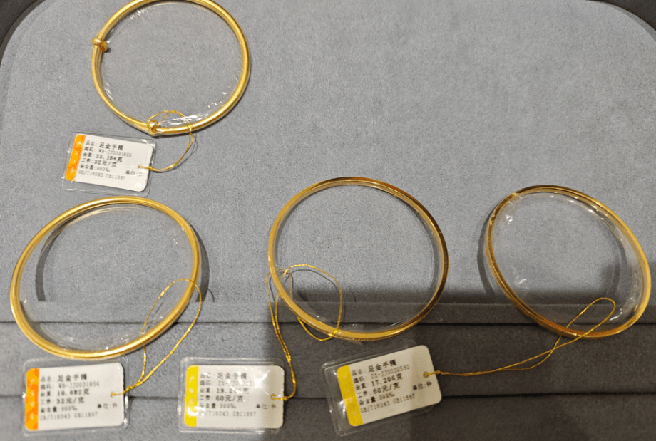 另外,据《消费者报道》记者了解发现,目前市面上较多3D、5D、5G工艺制造出的足金手镯都是空心的设计。