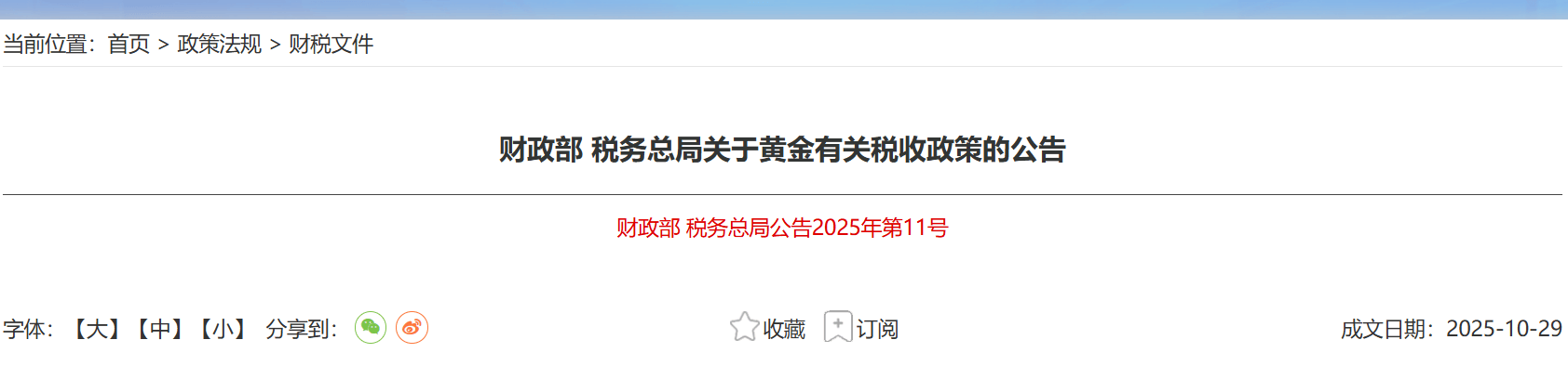 11月1日,财政部、税务总局联合发布黄金有关税收政策的公告,新政从11月1日开始实施,考虑到11月3日是该月的首个工作日,所以对各类黄金市场真正的影响其实是从当天开始的。