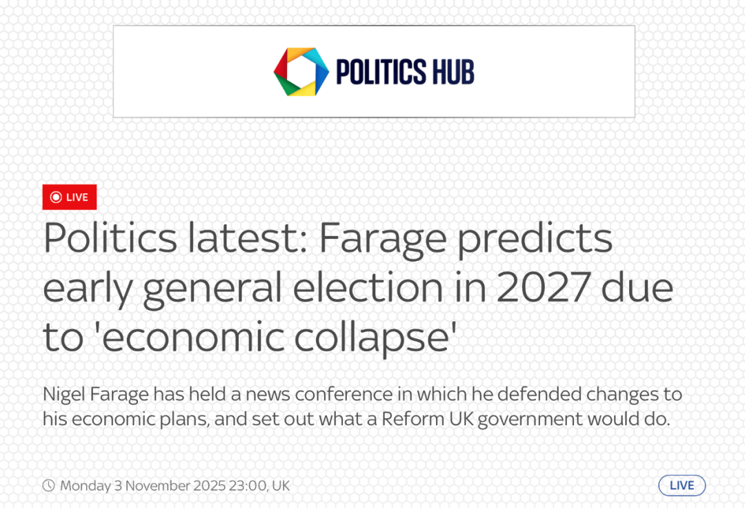 法拉奇预测,由于处于“经济崩溃的边缘”,英国可能被迫于2027年提前举行大选。
