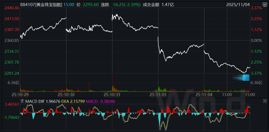 10月29日至11月4日黄金珠宝指数(884107.WI)走势