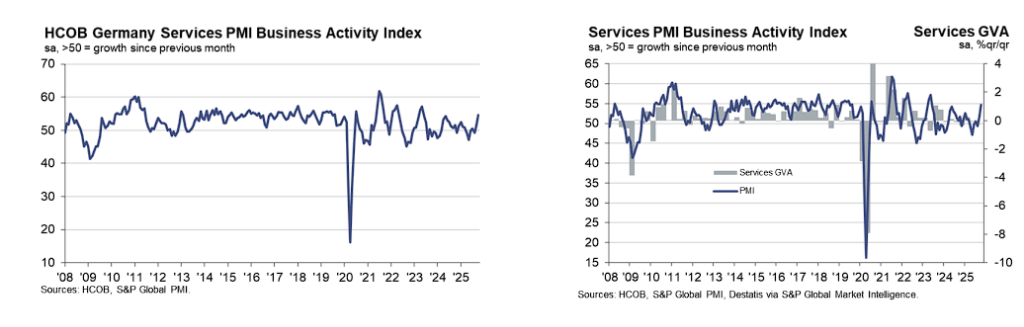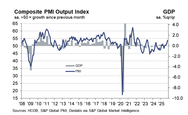 "德国服务业经济在经历一段低迷期后正在重新站稳脚跟。需求上升、重新招聘和定价能力增强的组合对更广泛的经济是好兆头,尽管企业对外部风险和成本压力保持警惕。"