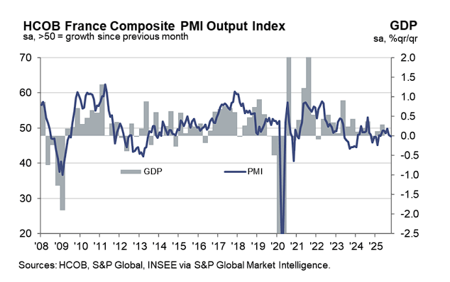 Hamburg Commercial Bank经济学家Jonas Feldhusen强调,"法国私营部门经济在第四季度初的下行趋势仍未减弱。"他指出,疲弱需求和政治不确定性是下滑的关键因素。