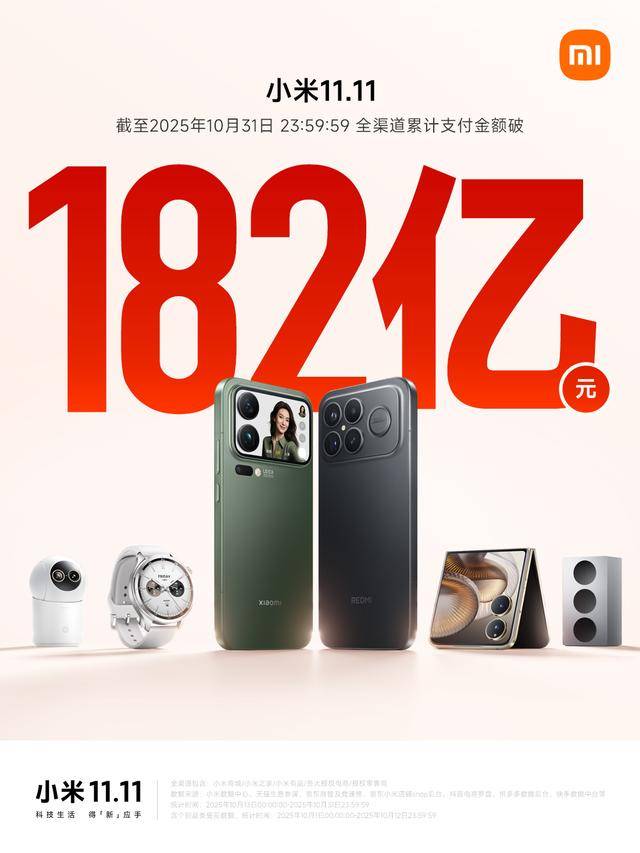 日前,小米公司宣布双11 开门红战报,截至2025年10月31日,小米双11全渠道累计支付金额破182亿。值得关注的是,小米手机斩获国产手机销量冠军,包揽天猫、京东、抖音、拼多多、快手全平台国产手机销量第一。