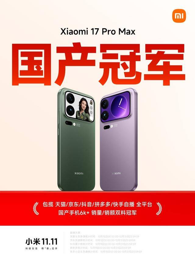 目前,双 11 大促仍在进行中,小米 17 Pro Max 的高端体验、小米 15 Ultra 的影像魅力与全品类的超值优惠仍在持续。