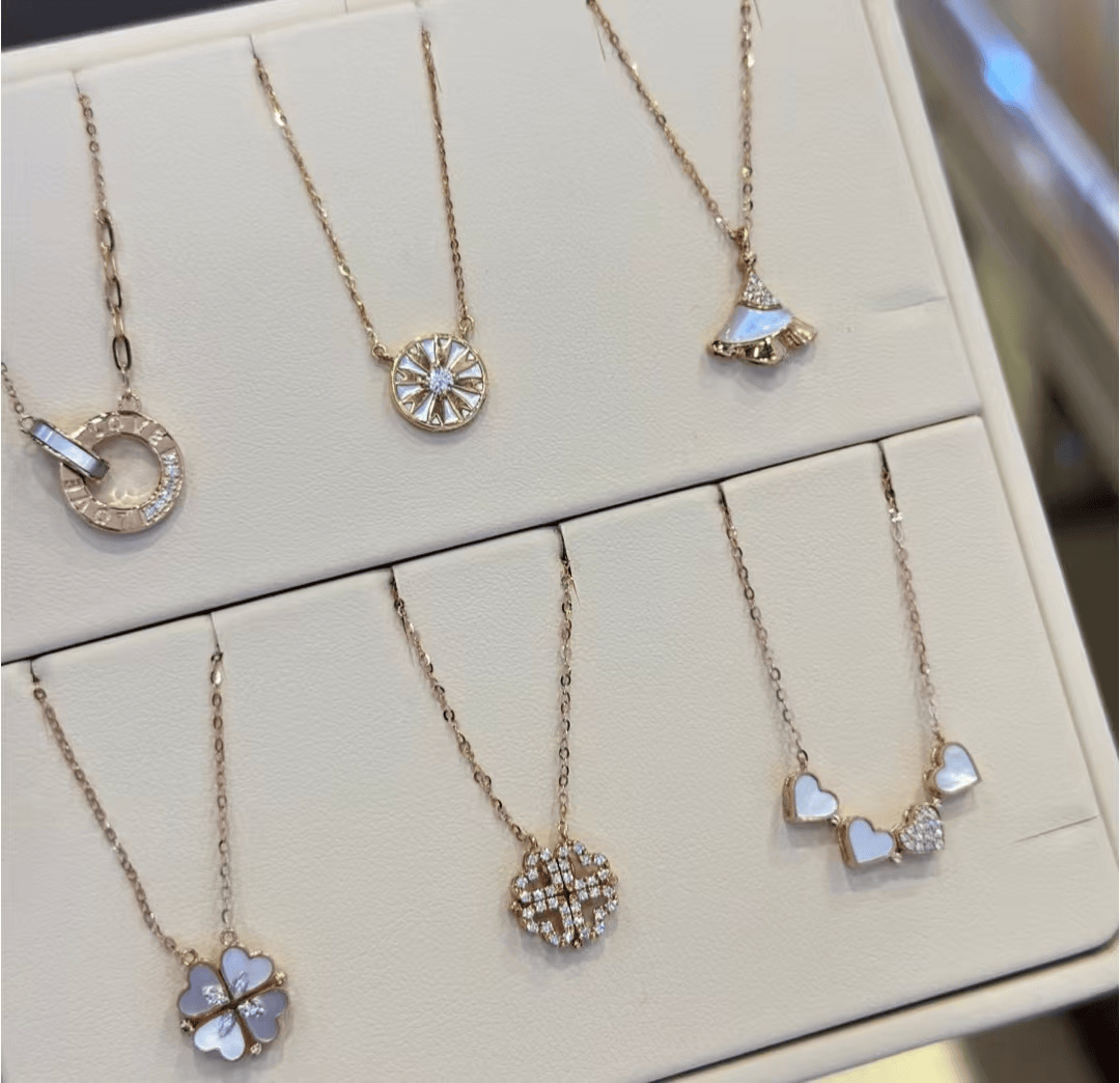 K金是以黄金为主要成分,通过添加其他金属制成的合金首饰。相比于黄金饰品,K金饰品硬度更高,容易造型,而且用金量少、成本低。