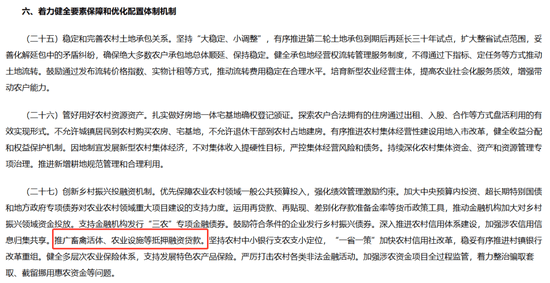 这是“1号文”首次提出推广活体抵押融资,代表着我国乡村振兴投融资机制迎来创新突破。推广畜禽活体、农业设施等抵押融资贷款,既拓宽了融资渠道,同时引导金融机构更积极地服务“三农”,为农业产业发展提供关键支持。