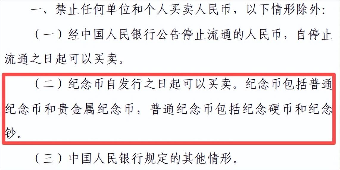其中明确提到,“纪念币自发行之日起可以买卖”,纪念币包括普通纪念币钞和贵金属纪念币。