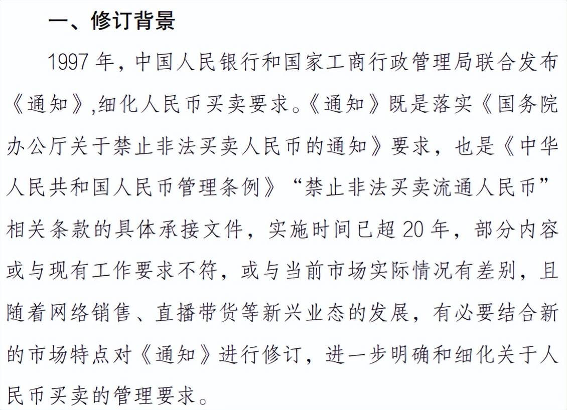 在1997年,央行曾经发布《通知》,细化人民币买卖要求,其中提到“禁止非法买卖流通人民币”。