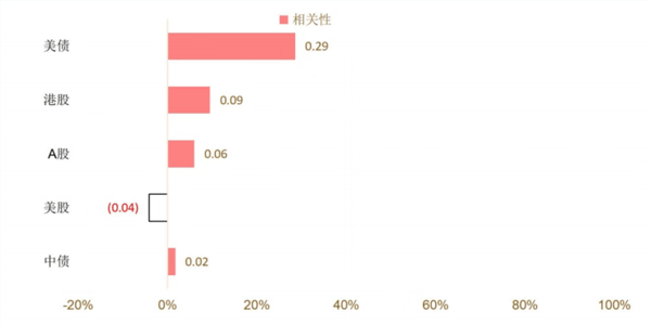 黄金与全球主要资产的相关性较低
