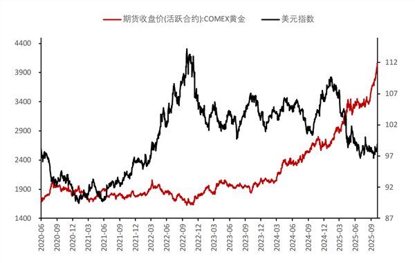 二是美元走弱,黄金计价优势凸显。美联储降息通常会导致美元汇率走弱。国际黄金以美元计价,美元贬值则意味着用其他货币购买黄金时的成本得到降低,也从而刺激了全球黄金需求。历史数据显示,黄金价格与美元指数往往呈负相关关系,美元指数走弱时期黄金通常会出现上涨。